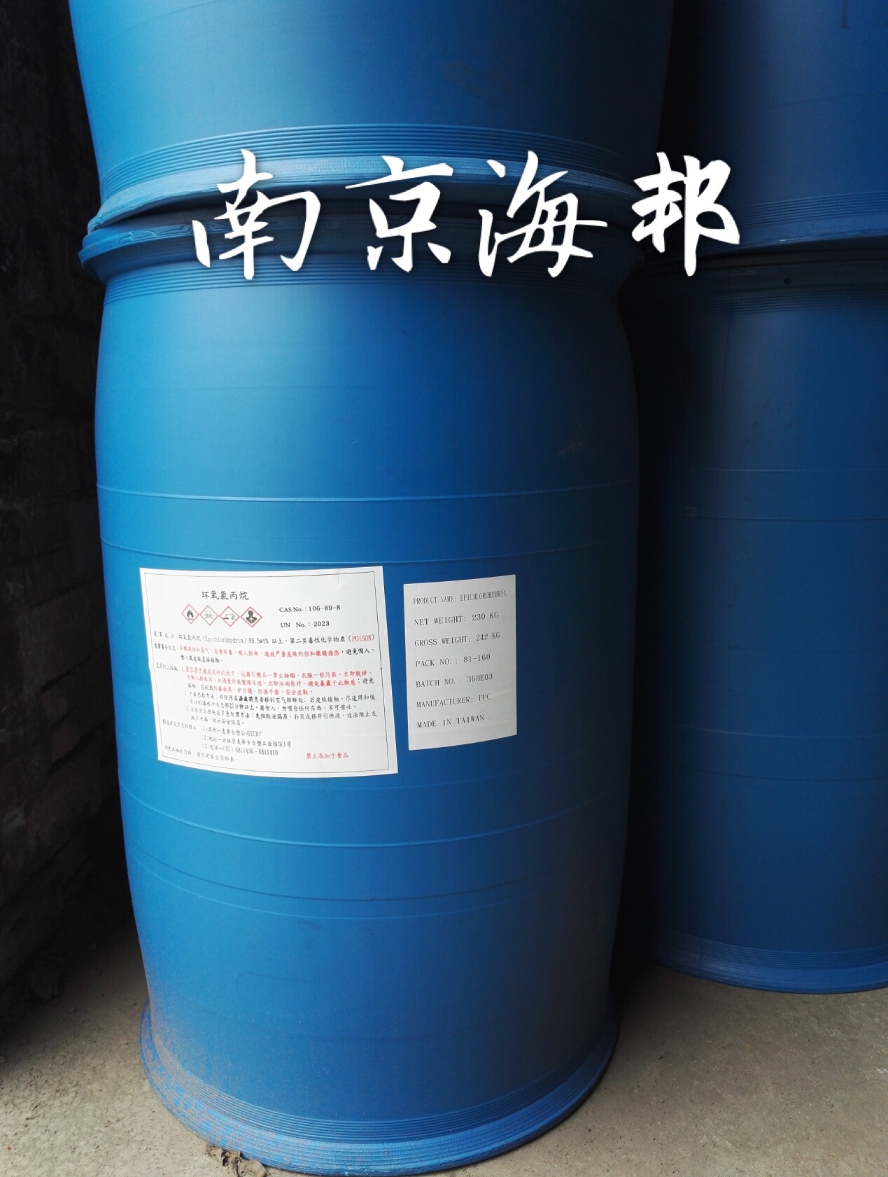 產(chǎn)品名 | 環(huán)氧氯丙烷 | 英文名 | Epichlorohydrin | 產(chǎn)品外觀 | 無色液體 | 包裝規(guī)格 | 230kg/桶 | 產(chǎn)地 | 臺(tái)灣 | 供應(yīng)商 | 臺(tái)塑 | 應(yīng)用 | 用于制造環(huán)氧樹脂、醫(yī)藥和表面活性劑等 | 危險(xiǎn)類別 | 易燃有毒化學(xué)品 | CAS NO | 106-89-8 |